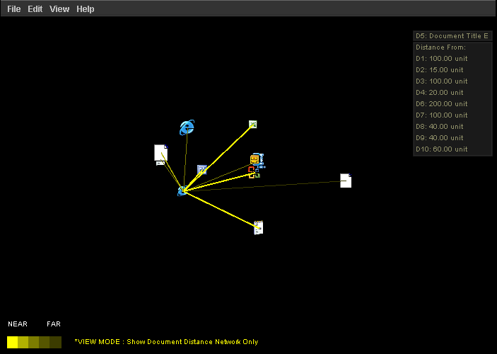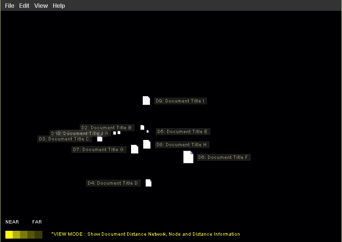If users want to see the distance between a document and other documents in space, they can simply click on a wanted document once.